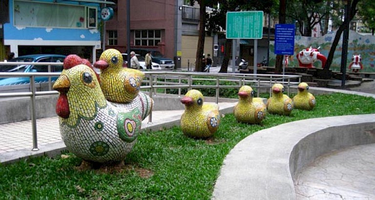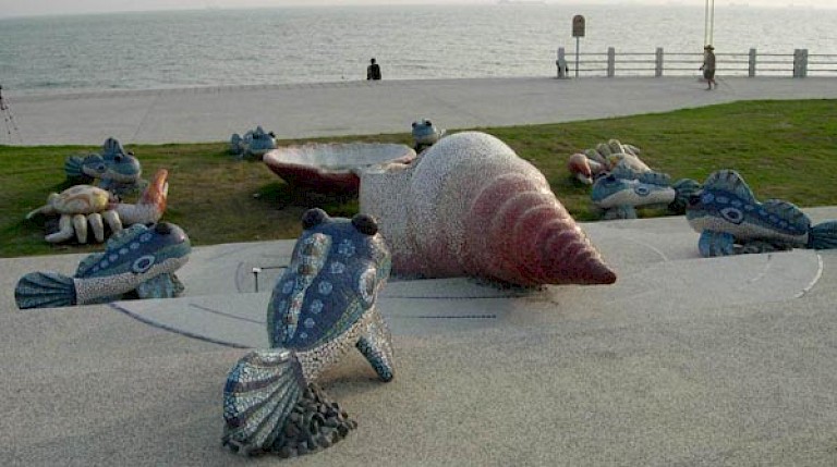 The Fine Arts and Visual Design departments of National Kaohsiung Normal University took the opportunity to create a mosaic “village corridor,” drawing the manpower for the project from the unemployed villagers themselves and teaching them the techniques of inlay. This not only helped ease the village’s unemployment, but it also stimulated the renaissance of traditional art techniques.