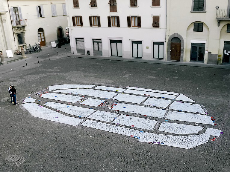 Artway of Thinking built a platform of trust between the new residents, the suburban residents, and the local government, by organizing several activities such as informal dinners, practices of observation, the installation of a temporary office for the collection of housing problems, and workshops that resulted in the translation of the data collected in a collective physical performance. Through the cartographic practice of classification and redesign of the historical center's spaces, the artists stimulated the blur of generational and ethnic divisions, and redefined together the aesthetical paradigms of the new multicultural community. The community produced three collective maps: the Love Map, about shared spaces; a public services map, composed of more than 66 requests in form of colored cards; and an aesthetics map, that collected the beauty and the ugly perceived by the participants.
