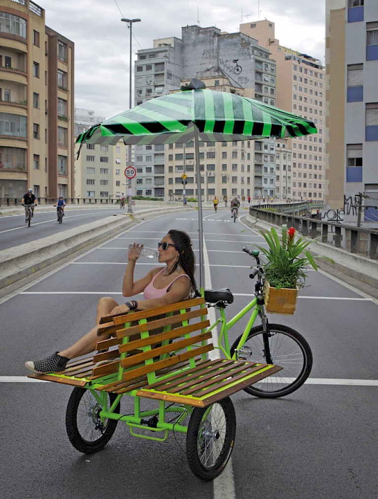 Actions that arise from sensitivity to observe the contemporary needs, has the power to quickly infect any person who made the artistic intentions usual as parts just by being linked to the common desire. The collective was pretentious in the ways art can be configured as a transforming element of public space, driving look to cracks through which they can build a new city. With its bike-squares they act as agents of an alternative group moved by art that wants to see São Paulo full of green and cultural events.