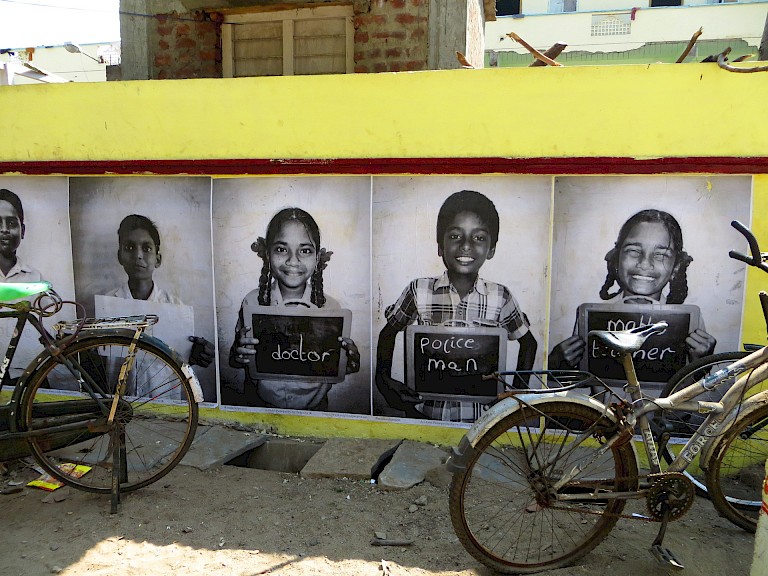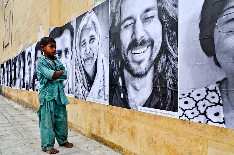 Of the many international examples of Inside Out, a couple stood out, which are worth specific mention: “Educating India” and “The Celebration of the Real Afghanistan.” The first consisted of photographs of children holding up little blackboards noting their professional ambitions, e.g. doctor, policeman, math teacher. The large format posters pasted on the street served as a reminder of the importance of education in the subcontinent. The images of girls with professional ambitions were particularly significant, given the fiercely patriarchal culture of India and the difficulties women face in pursuing professional careers.