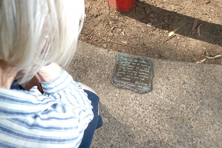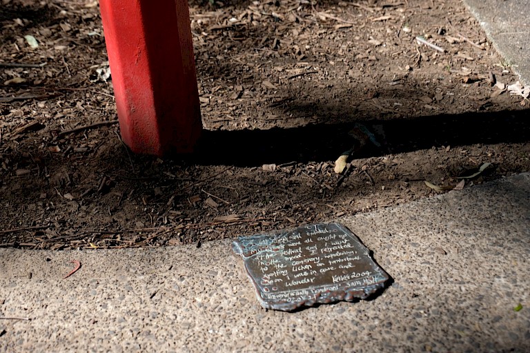 It was important to Holt that not all memories were happy ones, but that altogether the plaques could function as "relatable reminders for the viewer that everyone is dealing with different challenges at any given moment and where they are currently standing this person once experienced this." Insignificantly Significant suggests that "insignificant" memories of everyday people are not "lesser" layers of history nor lesser parts of the fabric of the cultural memory of a place. Certainly, for the participants, their friends and families, the project instilled a new sense of belonging and place. Unassuming in scale (approximately 15cm by 15cm) but embedded in highly accessible neighbourhood locations, the plaques have likely been experienced by thousands since their installation. Holt hopes that the project continues to provide unexpected moments of surprise and reflection as Inner-West residents and visitors stumble upon them in years to come.