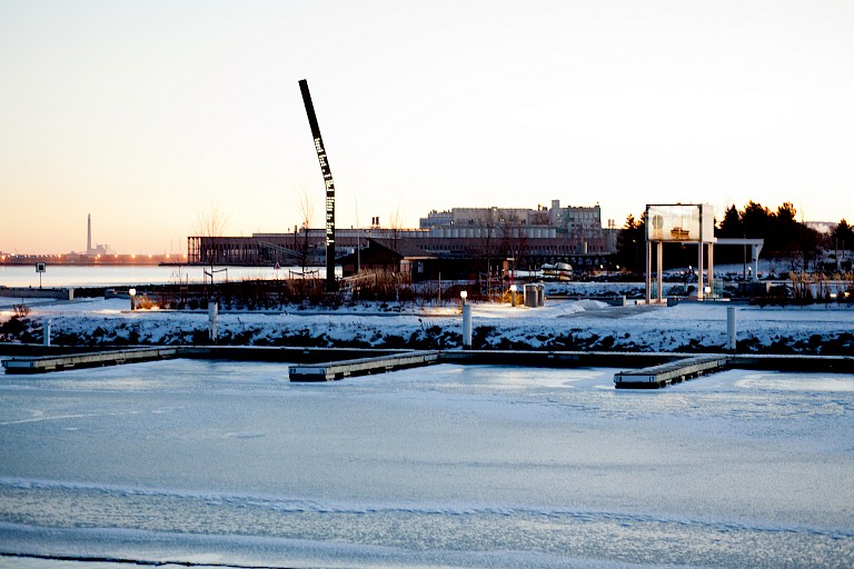 Despite their large size and use of heavy, industrial materials, the sculptures—which are referred to by locals as “the beacons”—retain a feeling of intimacy and simplicity. The cascading lights, which can be seen across the waterfront park, draw viewers toward the piece. Once nearby, people are drawn even closer by the soothing audio. The piece encourages listeners to get closer and reflect on the ways that people have interacted with Lake Superior for thousands of years. Bayly adds, “Jiigew could not have been created anywhere else, or for any other community. It draws upon local Ojibwe culture, language, stories, local history and local geography. It fuses industrial design with human voices, the stories of the people that live in the region, told in the languages of those people.”