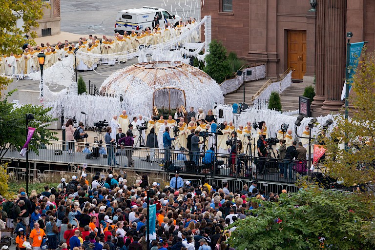 As the Pope’s visit arrived, excitement built on the ground, with the number of visitors ramping up to 20,000 per day. Speaking to the energetic quality of the site, Saligman noted that the more struggles were added, the more peaceful the site became, with the contemplative demeanor of the participants creating a palpable atmosphere. When the Pope’s procession passed the basilica, he stopped to bless the grotto, the individuals, and their struggles. All told, 150,000 individuals participated in the project.