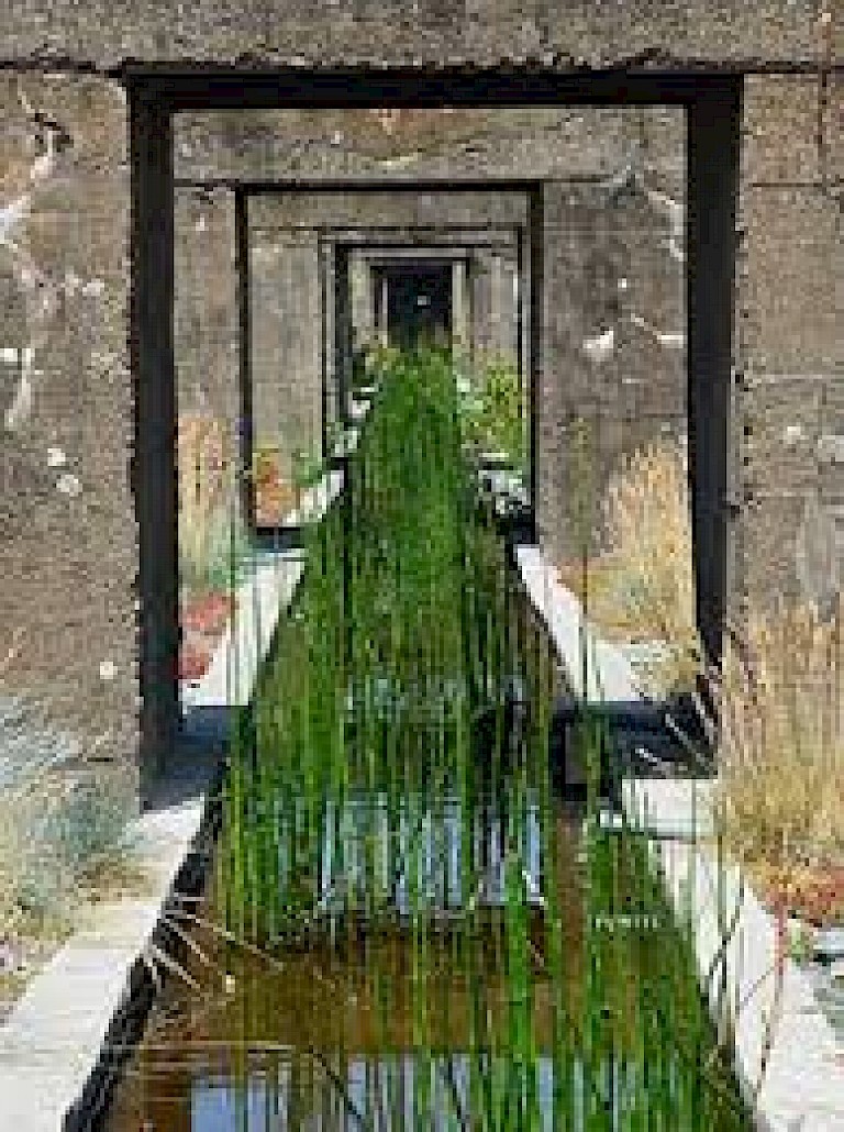 In 2012, for Le Jardin des Orpins et des Graminées (The Garden of Stonecrops and Horsetails), he uncovered rows of concrete which were then filled lengthwise with a canal of planted horsetails which the visitor encounters from a bridge giving a view of the entire base. Stonecrops and stem grass, robust plants that are emblematic of the estuary, bring vegetal life to this mineral environment. In the former submarine pit, Le Jardin des Étiquettes (The Garden of Labels), Clément added a thin layer of bedrock onto which the wind, birds, and the soles of visitors shoes will deposit seeds as they pass through. The proposal with this project, as with all the projects commissioned for Estuaire is for a continual and ongoing maintenance programme which embeds the work further in the local landscape. Twice a year, new plants will be identified planted and labelled. To complete the triptych, Clement created a ‘Third Landscape’, an undetermined fragment which designates the sum of the space left over by man to landscape evolution - to nature alone.