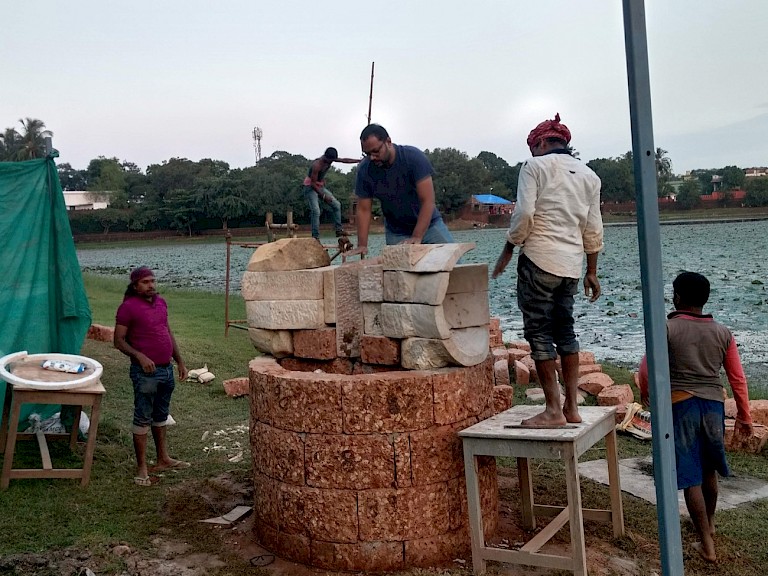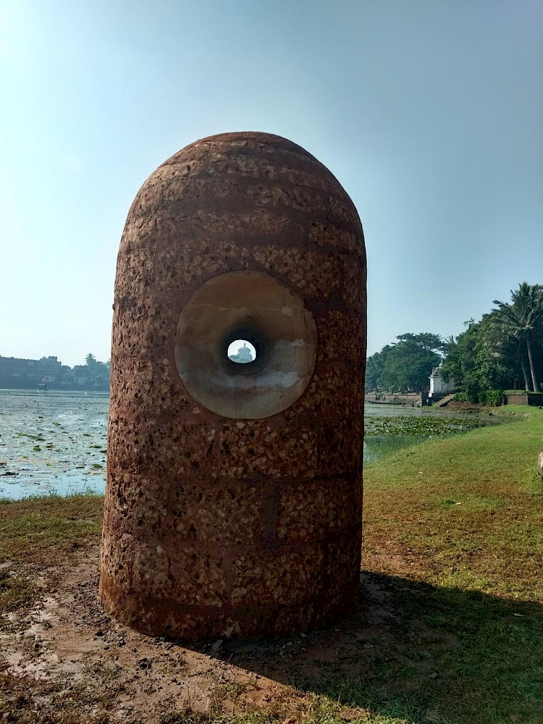 The location by the Bindusagar, against the backdrop of the Ekamra Van, provided the perfect canvas for this artistic expression. The serene waters and the medicinal garden encapsulated the idea of healing and growth, further resonating with the installation's themes of introspection and evolution.