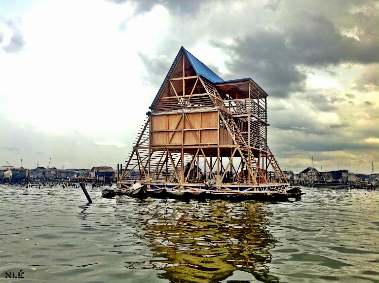 The most compelling attributes of the project are conceptual. Adeyemi reimagined water as his project’s construction site. He designed structures to harness and improve the skill sets of the artisans of the waterfront. The project was created from leftover materials donated by a local sawmill and locally grown bamboo, harnessing a Sub-Saharan tradition of utility from waste. It took the tradition of personal floating structures and made them into a community center. The structure is ten times larger than the local fishing vessels and stilt architecture used for residences and local businesses.