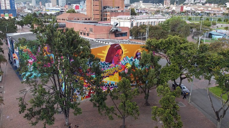 In collaboration with the Secretaria de Cultura Recreación y Deporte (the Secretary of Culture, Recreation, and Sports) and the Instituto Distrital de Patrimonio Cultural (District Institute of Cultural Heritage), IDARTES (District Institute of Art) created a program to promote urban art and to create cultural activations along the city of Bogota.