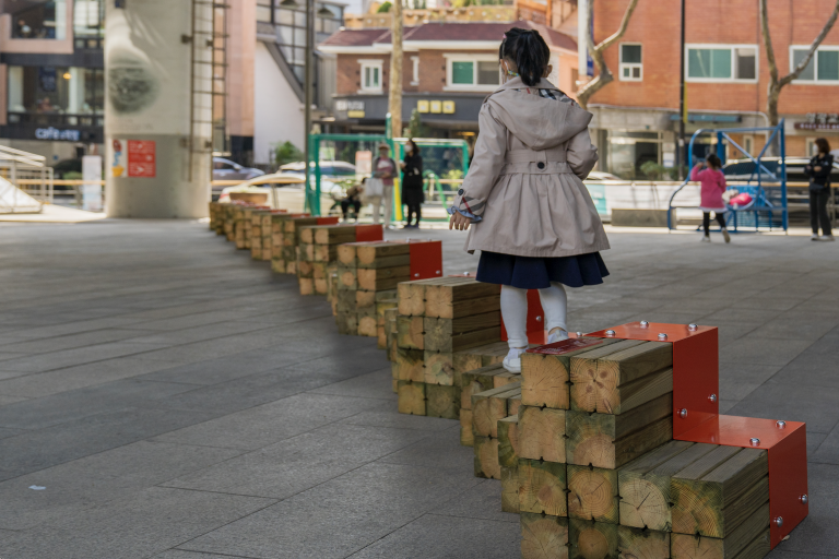 <New Play, New Connection, New Normal> actively reacts to a drastic change of society and reflects it on the context. With a quick response to the common issue, ‘10000 arts 10000 acts’ emphasize their willingness to suggest solutions. As a result of that, the project welcomes the local citizen to their square to enjoy a little walk and sitting and comfort them in an artistic approach with a playful context.