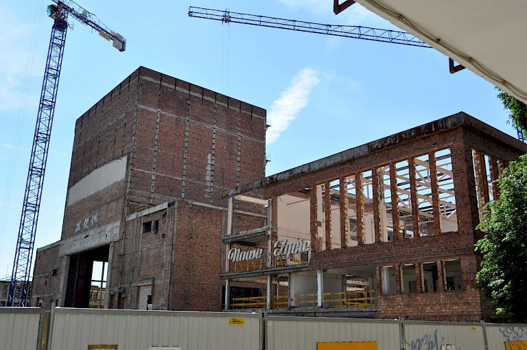 During the following months, she had the electric parts replaced and the whole piece restored — in order to show the sign later in different spaces, configurations, and contexts. Since 2010, the neon New Life, as an eponymous artistic work, has been traveling from place to place and initiating new events. The object has also been exhibited in various institutions, galleries, and museums — always marking them with its meaning, starting a cycle of changes in these places, or celebrating the change that has already happened. So far, the gigantic ten-meter light installation has been shown in thirteen different contexts. In August 2014, New Life was installed in Xawery Dunikowski Park in Warsaw. The park is located around Królikarnia (literally, "The Rabbit House"), an 18th century classicist palace that was completely destroyed during World War II and reconstructed in 1964 — and Elżbieta Jabłońska placed her work there as a call for protection of the heri of the site for arts and of the lively urban public area at the same time, in contrast to the environment for which the sign had been created initially.