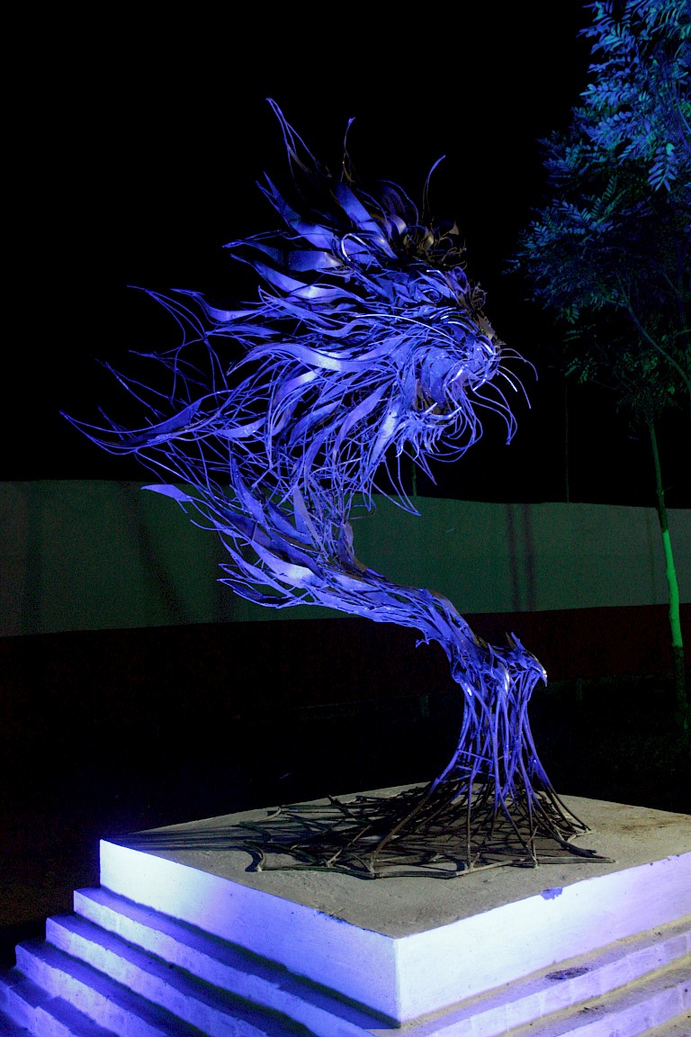 Keeping in mind the Men’s Hockey World Cup being organised in Bhubaneswar, a proposal was made involving the 15 participating countries with India being the 16th team & the host. Reputed international artists from 14 hockey playing countries turned up accompanied by 7 Indian artists and few more co-artists. Only Pakistan could not turn up due to visa issues. The prominent artist of international repute includes Augusto Daniel Gallo (Argentina), Heidi McGeoch (Australia), Didier Lemans (Belgium), Royden Mills (Canada), Jiang Chu (China), Noah Rose (England, Matteo Baroni (France), Nils Hansen (Germany), Paddy Bloomer (Ireland), Rosli Zakaria (Malaysia), Anita Maria Wilhemina de Harde (Netherland), Donald Burglass (New Zealand), Sandile Radebe (South Africa) & Daniel Perez Suarez (Spain) . The Indian list includes Jeetender Kumar Ojha, Chuguli Sahoo, Sanivada Lakshman Kumar, Valsan Koorma Kolleri, Chitrasen, Kanta Kishore Maharana, and Gyana Ranjan Panda assisted by other local collaborators. The proposed land was handed over to the artists by 1st November for starting the work on the sculptures. Some turned to nature for their inspiration, be it wild animals like tiger, lion, bull, elephant, fish, deer, owl, peacock, bird, macaque, hyena or even olive ridley while some went for abstract kinetic creations. Interestingly, some creations were quite interactive and the artists have shown their minimum generosity to mention their collaborator and assistant names in the art work.