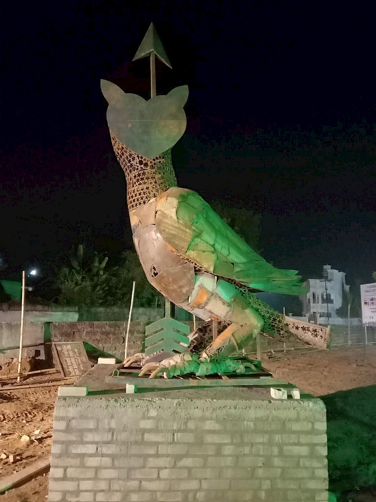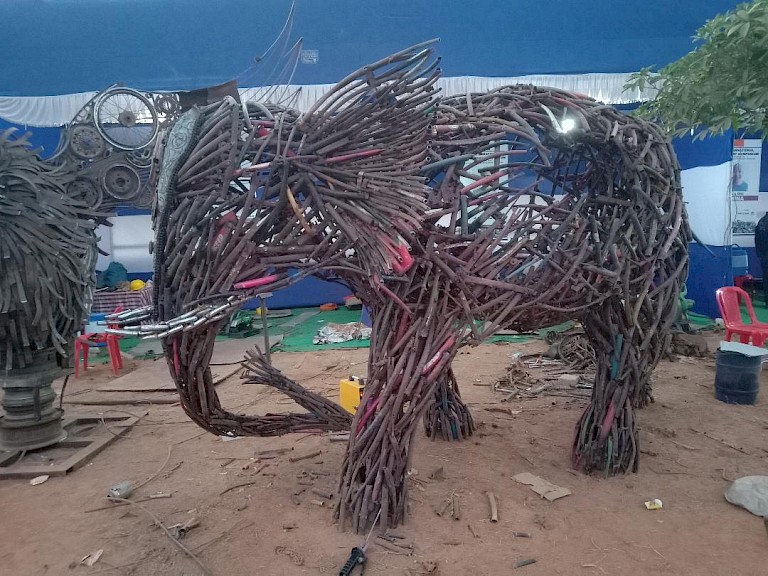 Once a visitor enters the museum complex, he is sure to get spellbound by the sheer artistic creativity done on the 28+ art installations there. The artists have used around 50 tonnes of scrap material arranged locally from cycle parts like tyre rims, freewheel, cranks, auto rickshaw body, car & truck junk, scrap irons, metals, oil drums, construction materials, plastics & tyres etc. The scrap was arranged after a initial discussion with the possible artists beforehand regarding their wish list available resources locally. The Waste-to-Art museum has been created as part of Odisha state’s first International Public Art Symposium held from 1st to 19th Nov 2018 and inaugurated a day later by honourable CM. It was organised by charitable trust Artists Network Promoting Indian Culture (ANPIC) at the 5 acre museum site donated by BDA. It’s an initiative to aware people on waste materials through art and also encourage and inspire the young artists of Odisha to come up with new ideas of awareness through art. The general public are also expected to have a favourable view on waste material management.