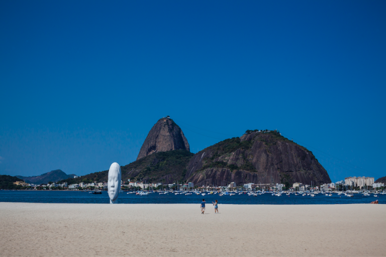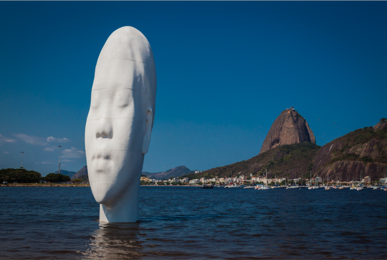 For Rio’s Awilda, Plensa wanted to “make the people dream,” and so he placed the figure in a dream-like setting. The name Awilda means “untamed” and is historically associated with a legend about a Scandinavian princess who became a pirate rather than being forced to marry. This history, combined with the rest of the title, Olhar nos meus sonhos / To see my dreams, alludes to a character of strong will and vast inner space. Plensa’s sculpture captures these attributes fully. Awilda is a monumental figure of serenity and mystery. Rooted in water and framed by the iconic landscape of Sugarloaf Mountain, the sculpture acts as the female, earthly, inward-facing counterpoint to Rio’s more iconic monument, Cristo Redentor (Christ the Redeemer), which embraces the city (and the world) from his heavenly perch on Corcovado Hill. She is approachable and touchable, fully displayed for the public but looking inward from it, a blank canvas for interpretations, thoughts, and dreams. She encourages the viewer to close their eyes and see within.