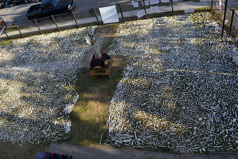 The project was designed as a network of collaborations across nations. It transforms the collaborative process of the construction of bones into a metaphor for the individual and collective responsibility about “others” tragedy. This public art project involves extensive educational programming and manifestations that expand beyond just awareness, but into mechanisms of regaining social consciousness and responsibility. The project scope is a call to action and calls into question our humanity.