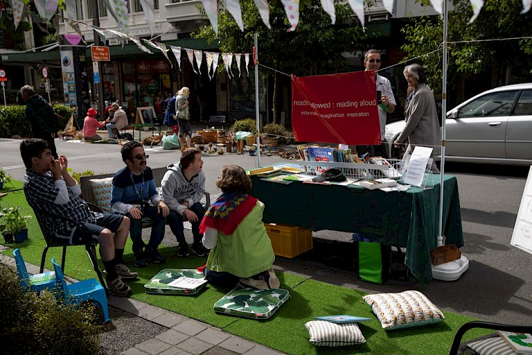Park(ing) Day in Wellington is organised by the Wellington Sculpture Trust (WST), working in close collaboration with the Wellington City Council, which provides the 30 parking spaces occupied by participants for 8 hours on the day. WST has supported ten iterations of Park(ing) Day to date. In each iteration, “For one day a year, artists and community groups take over inner-city car parks, challenging us to think about how we can make better use of our public space.” (WST)