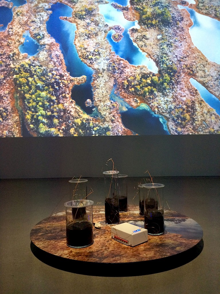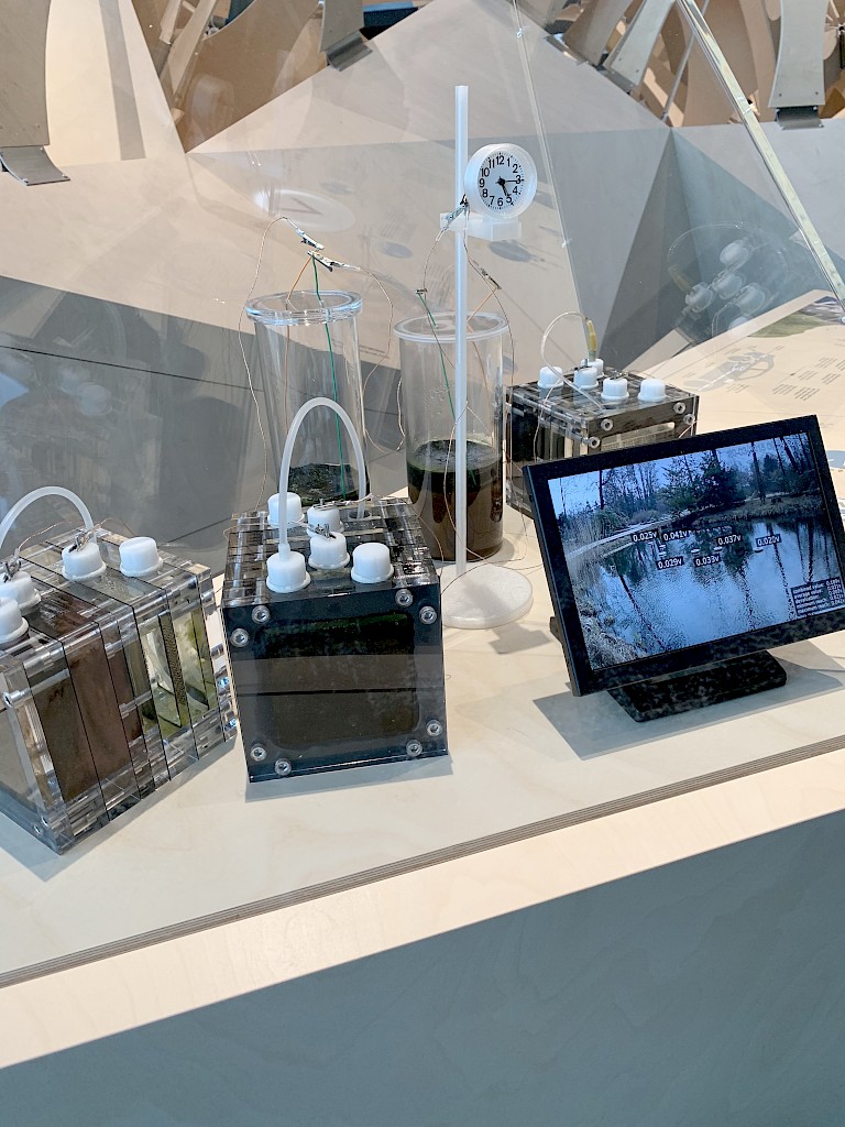 In 2013, in the frame of the exhibition entitled Project Genesis - Synthetic Biology 4 organized by Ars Electronica, the largest international cultural, educational and scientific institute active in new media art, Rasa Šmite and Raitis Šmits, in collaboration with artist Voldemars Johansons, presented the Biotricity series (2012). Pond Battery. A Poetics of Green Energy, is one of the outstanding outcomes of the Biotricity series.