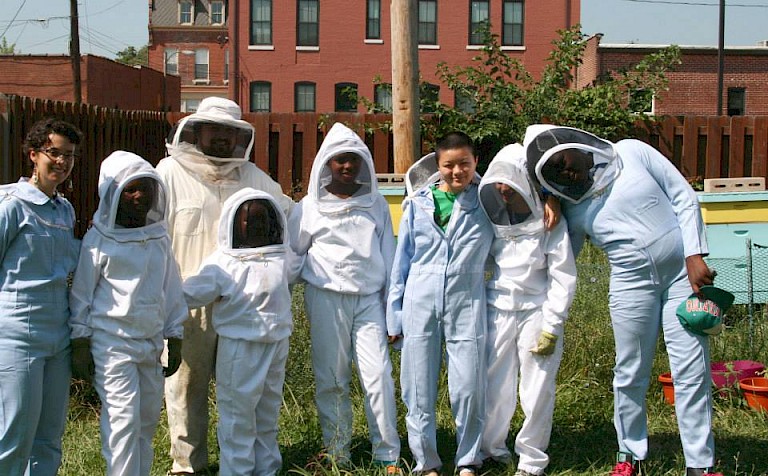 The Pruitt-Igoe Bee Sanctuary proves that art, community building through urban agriculture, and education can have a transformative impact. By inviting young people of North Saint Louis to be in a space where they can explore not only the land they live on, but the cultural climate they are living in exemplifies the kind of creative change making we so admire. Pruitt-Igoe Bee Sanctuary has received awards and grants from the following organization: John Simon Guggenheim Memorial Foundation, Creative Capital, Art Matters, Graham Foundation, and Grantee Kindle Project Fund of the Common Counsel Foundation.