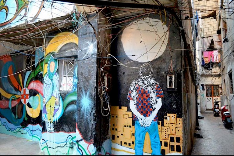 Regional artists were invited to enter into Sabra and Shatila camps – a rare process which requires permits, limited visitations and heaps of paperwork, to meet its inhabitants who are confined to these camps. The artists learnt of a heavy sadness, poor living conditions, and a desire for these people to move, create, feel inspired, and to reinforce their collective memory, particularly as new generations are being born.