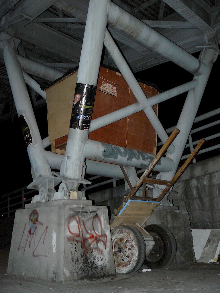 These objects or ranchos started to be moved throughout the artistic spaces, however, the artistic occurrence happened in the experience of inhabiting the street and the city, it did not happen in the object created for this, and because of this the project ended just when it started to be understood from the artistic field as the production of museum worthy objects. This contradiction is the core value of Rancho which is thought to be done without money, without permission and in the street, in other words under the logics of inhabiting the streets, incompatible with the ordering systems of the world of which the artistic system is part, in this sense that Rancho is a site specific project that depends on its spatial dimension but also on its temporal and cultural dimensions.