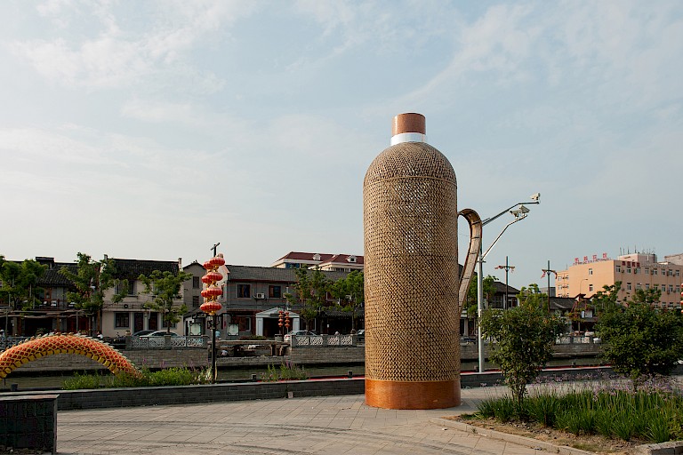 One of the 15 works, the blue tent which echoed the style of traditional Chinese architecture, for example, drew the attention of the public to the stark contrast between classical Chinese and modern industrial aesthetics. By allowing audiences to step into the makeshift ‘home’ the work facilitated reflection in a playful atmosphere, encouraging a convivial spirit in the random social encounters it facilitated. Another work used the materials and vocabulary of industrial construction and urban development—in this case, traffic cones and wooden workbenches—to stage a sculptural form familiar to the Chinese, a dragon, against a natural backdrop of trees. Like the other work, this too asked the public to contemplate the dissonances and possibilities for harmonization between the natural and industrial/artificial components of contemporary Pudong life.