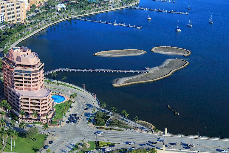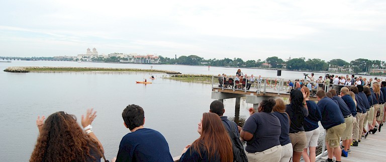 Part of this project’s excellence is precisely the fact that it broadens the definition of public art. “This project advances community interactions and understanding, as well as manifests the missions of ecological groups and a governmental environmental resource management agency,” says Singer. “It helps to replenish the South Cove of the West Palm Beach Intracoastal Waterway, which has suffered from the construction of a waterfront roadway, pollution, and loss of critical natural habitat and wildlife.”