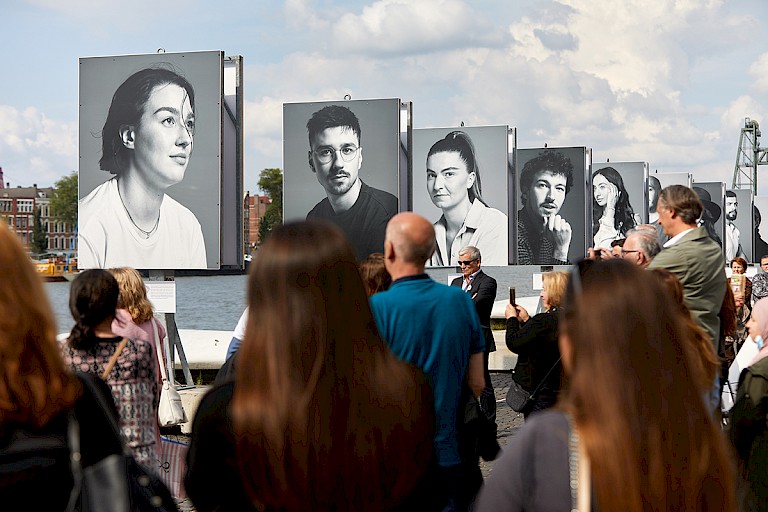The installation consisted of 25 large photographs, two by three metres, accompanied by the stories of the people portrayed, as well as their connections to the event.