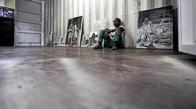 In 2012 she worked on the Soweto Art Residency project, headed by TV and film director Dumisani Phakathi, coordinating the artwork received from artists needing a platform. There were so many artists sending their portfolios and next thing she knew she had a bunch of great work that deserved to be hanging in a gallery. Phakathi approached two galleries with the idea of working as a full-time curator. She was turned down because most of her portfolios were works of young artists and gallerists kept asking who they were and what they'd done. So she decided to open on her own. The idea to use the container appealed to the artist as it was a way to use space in a different manner. The container also means that it can be a mobile tool allowing for pop-ups in different locations. When choosing a location, energies are of vital importance and is huge contributor as to where the gallery is situated - space is not selected for the sake of having a space.