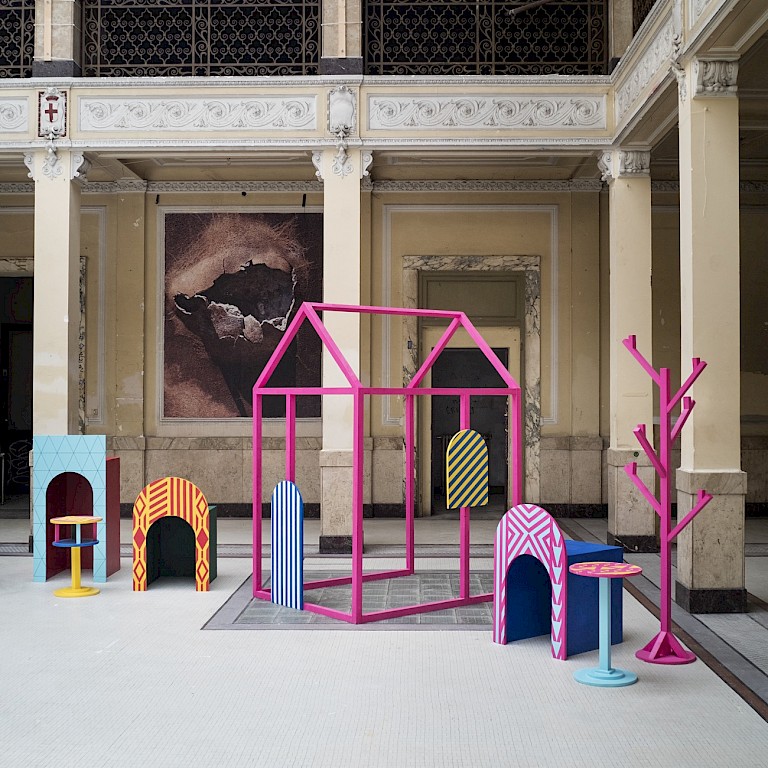 "Rìfugiati," the first items to be produced, were a collection of children's toy houses. These were created with a professional designer named Matteo Zorzenoni. The outcomes were presented in an independent design market at Christmas 2016, two or three months after the opening of the laboratory. This was followed in 2019 by the exhibition of a collection of coats and armchairs at the prestigious Salone del Mobile in Milan. The Milan show revealed domestic micro-architectures for children, expressing visions and needs for refuge and comfort zones.