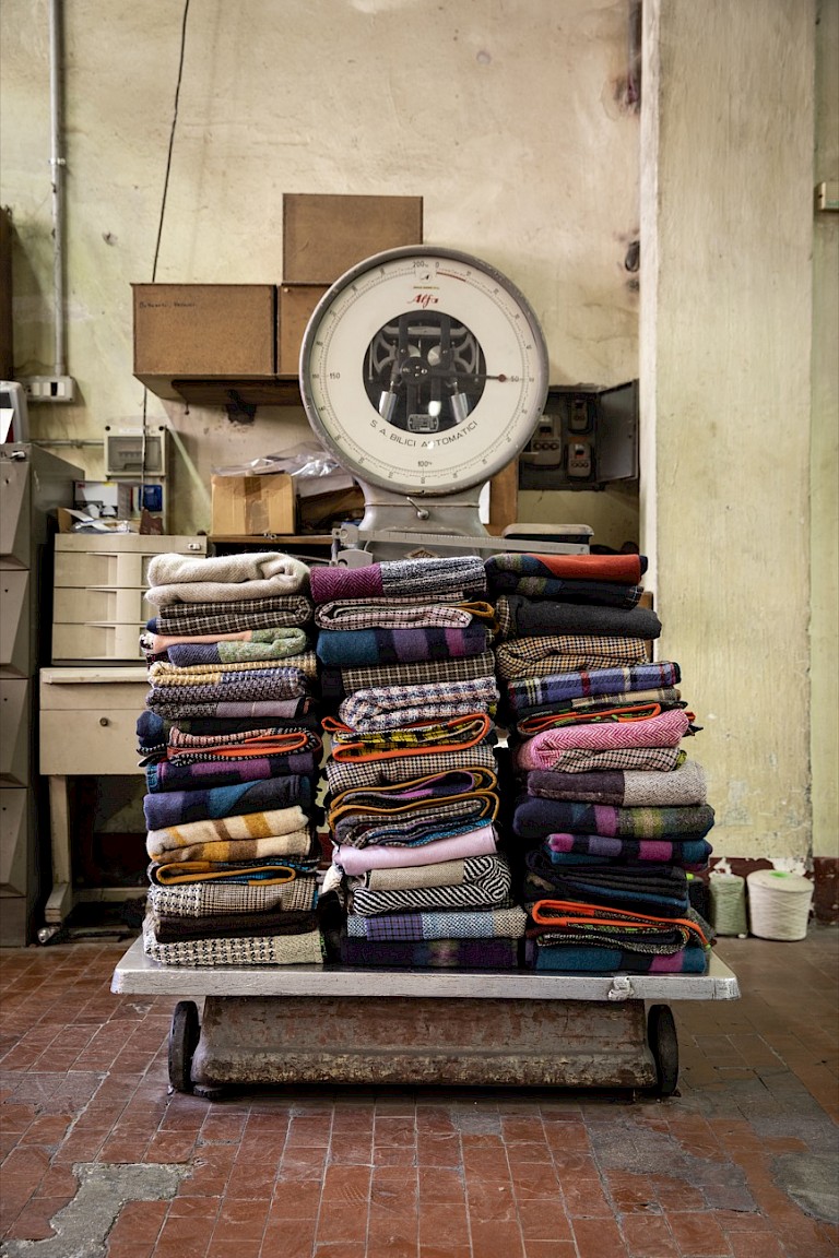 For example, there is the Lanificio Paoletti mill, which has been supplying Talking Hands since 2017. This supplier recently presented its supply chain at the BIFTI in China. This wool mill is based in Follina in the Belluno Pre-Alps where, in the Middle Ages, Benedictine monks settled and created a complex system of water infrastructure which then allowed the great industrial development of the Veneto wool industry. The geographical position is characterised by slopes frequented by shepherds who came down before the Transhumance, for the shearing which took place on the days of Pentecost. The Lanificio has continued to maintain this tradition through the organisation of a festival entitled "The Wool Route" which is held in the factory - an industrial building that is also a structure of archaeological significance. Here, international artists work with the fabric, and are invited to reinvent the work space as an exhibition, experimentation, and meeting space. Talking Hands collective has participated as an invited artist (collective). Functioning in the area since 1795, like many Italian textile industries the mill faced a crisis with the introduction of synthetic fabrics in the 1950s. The industry was mainly retooled to serve the national and international luxury market. The facilities produce scraps, including very large pieces of high value materials (including from research outcomes). These off-casts are then regenerated in the Talking Hands collections.