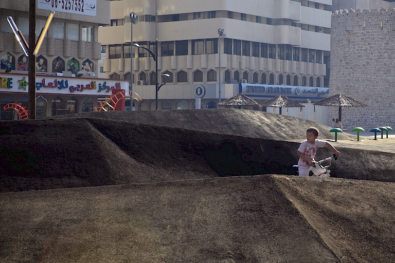 The installation also captured the changing nature of Sharjah, having once been the commercial hub of the United Arab Emirates, it has now been surpassed by other regional commercial giants such as Dubai or, the capital, Abu Dhabi. Notwithstanding this, international artists have found the unique spaces and urban planning that Sharjah has to be a particularly enthralling canvas in which to reflect ideas of change, identity, subjectivity and personal expression. SUPERFLEX had accurately ensured that the public space they had created was equally as intriguing as it was fitting to its local environment.