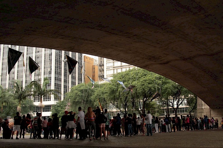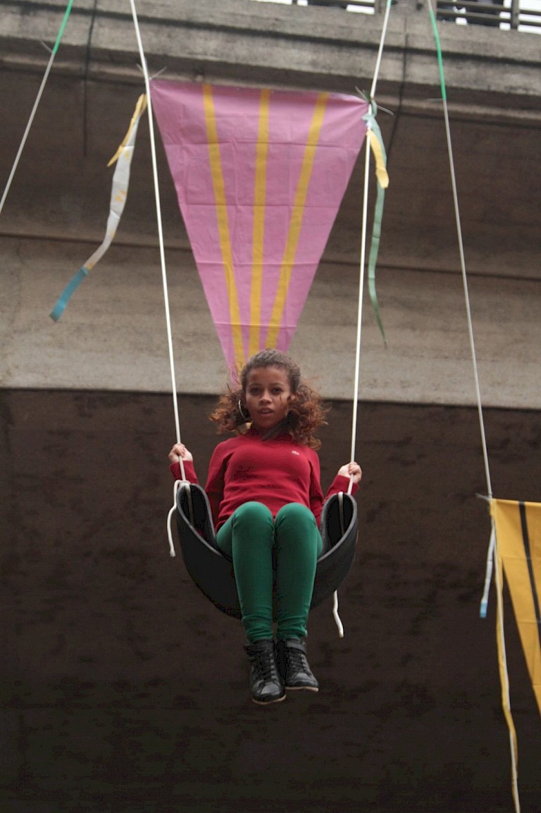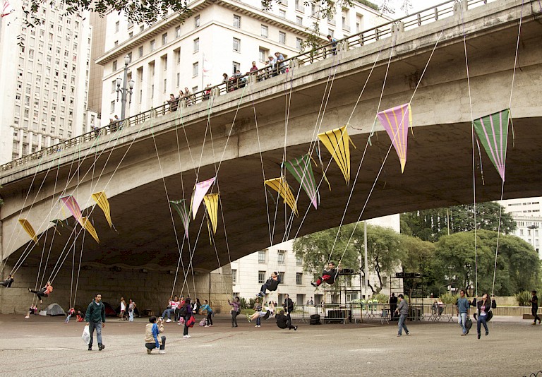 With the work, the playful view of the city was not only possible, but also palpable. Amid gray and charged landscape of concrete stiffness and vertical buildings, people were mild, and the playful swing seemed to fly in the midst of “Vale do Anhangabaú” and each time felt more comfortable in that condition, most drove their bodies to achieve greater heights.