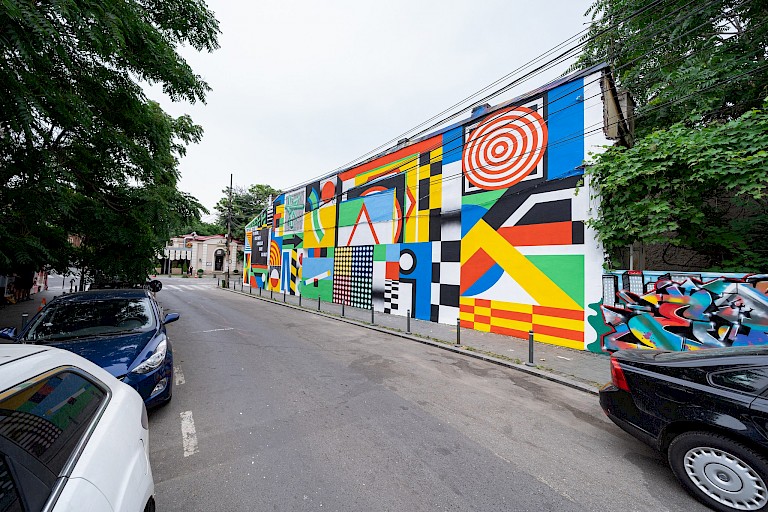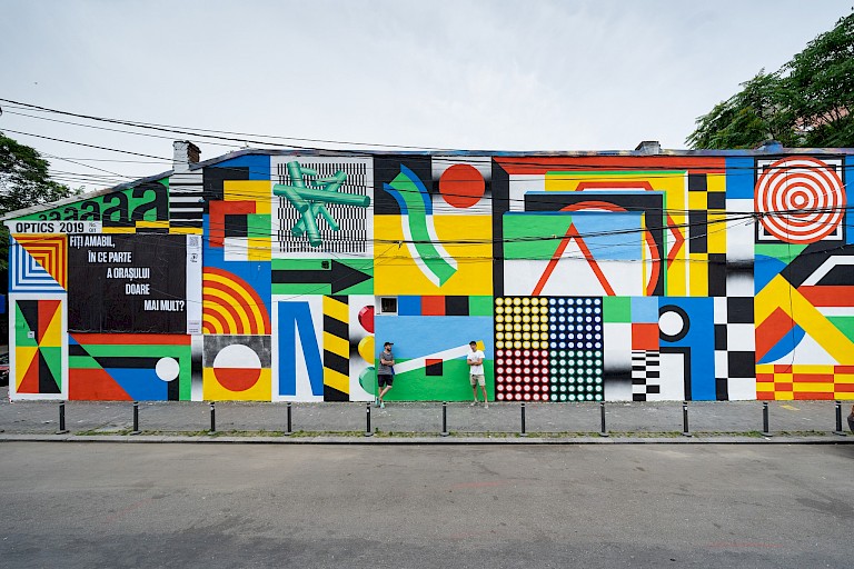 The mural The city is the message was created in 2019 during Street Delivery Festival, the oldest and most important urban festival in Romania, by Lost.Optics and Pren (under their crew name Optics Group), and curated by art agent Elvira Lupșa.