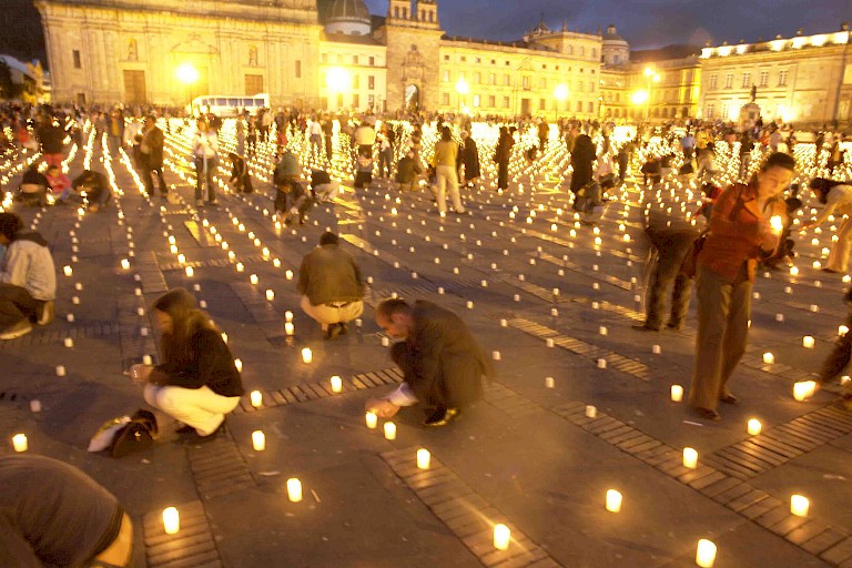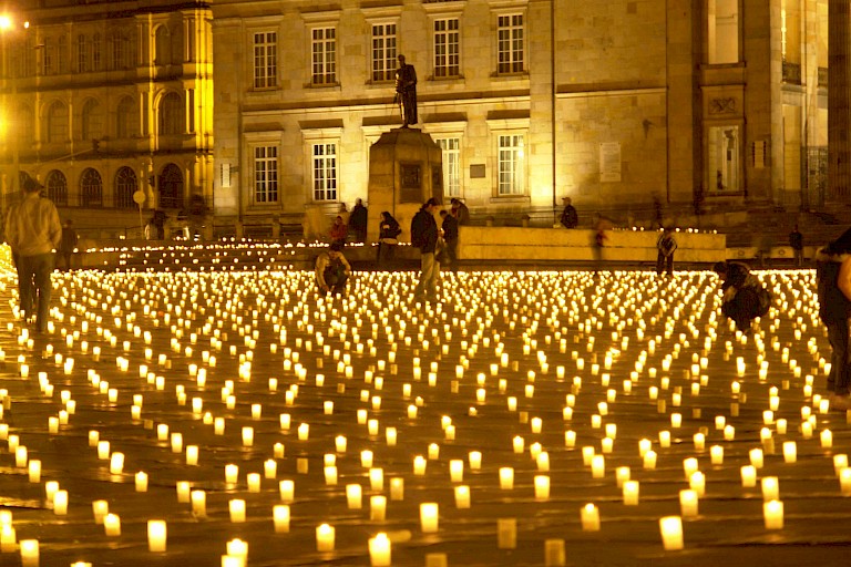 The act of filling Plaza de Bolívar with candles silently honored Colombia, a country that constantly mourns—oftentimes grieving death without bodies. “If you want to dignify a human life then you have to come back to beauty,” Doris says, “That’s where we find dignity and almost turn [it] into a sacred space.” Plaza de Bolívar is flanked on three sides by historic government buildings rising high above the square where politicians make high level decisions. The candles, small and quiet, reminded them of the work they have failed to do.