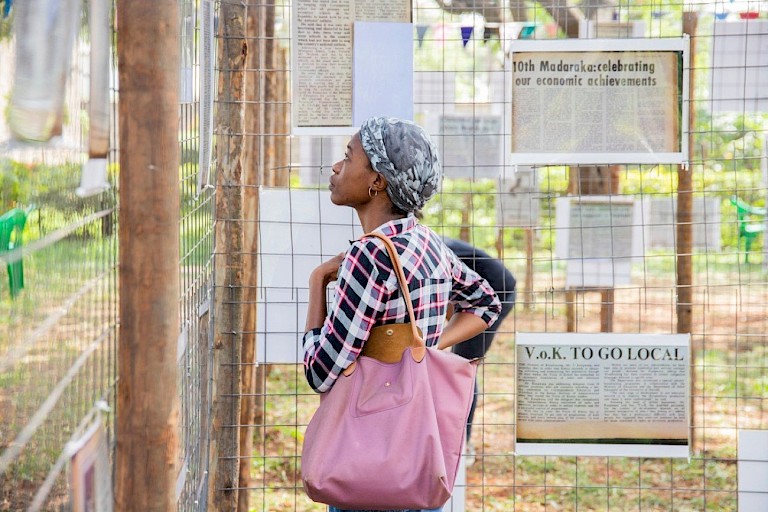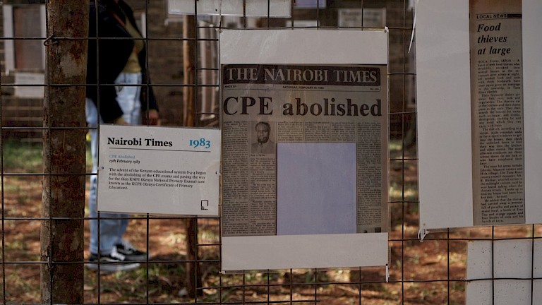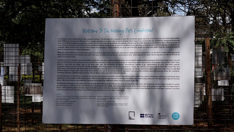 The Missing Bits is an installed exhibition had other components including sharing brief curatorial thoughts about what was interesting for the curators in the chosen pieces as they thought about the bridges between the past, the present and the future of not just Nairobi, Africa but the entire world, although from their Kenyan perspective. To even make it more appealing and engaging for the audience during the opening they added an additional exciting perk and featured storyteller, performer who devised and developed a series of fun questions for the exhibition attendees that day, loosely based on the maze content and related ideas. They also included exciting prizes. All these gave more life to the framed contents taken from the library to reflect the life and times of Kenyan people within a space of 20 to 30 years. The installed exhibition is mostly made up of Newspapers from the Library archives (1963, 1973, 1983), installed in public space. This facilitated a reflection on communication forms, style and issues the country faced in those years and the connection to the present day.