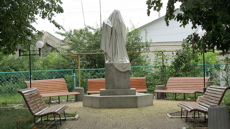The installation “Monument to a New Monument” by Zhanna Kadyrova was presented in Shargorod (southwest of Ukraine), in 2009. Zhanna Kadyrova came to Shargorod for the first time during the architecture festival held in 2007, where she presented the first version of the work. Willing to explore the potential of art for the small town, Zhanna suggested its municipality to construct the permanent work and see how people would react. The city council agreed to arrange a new small square for the piece — as a part of the big urban installation, with paths and benches around it in Lenin Street, practically reconsidering the structure of post-Soviet public space. The preparations were taking place during the following couple of years, and the work was finally launched in 2009, with the active participation of the town’s community and municipality. The locals contributed to the work on space arrangement, adjusting and improving the infrastructure of their hometown. The piece was further presented as a video hologram within Ukrainian pavilion at the 55th Venice Biennale, but the actual Monument is an integral part of Shargorod, where the artist often presented and created her other pieces. Zhanna received the official acknowledgement from the mayor of Shargorod, and collected positive feedback from the community.