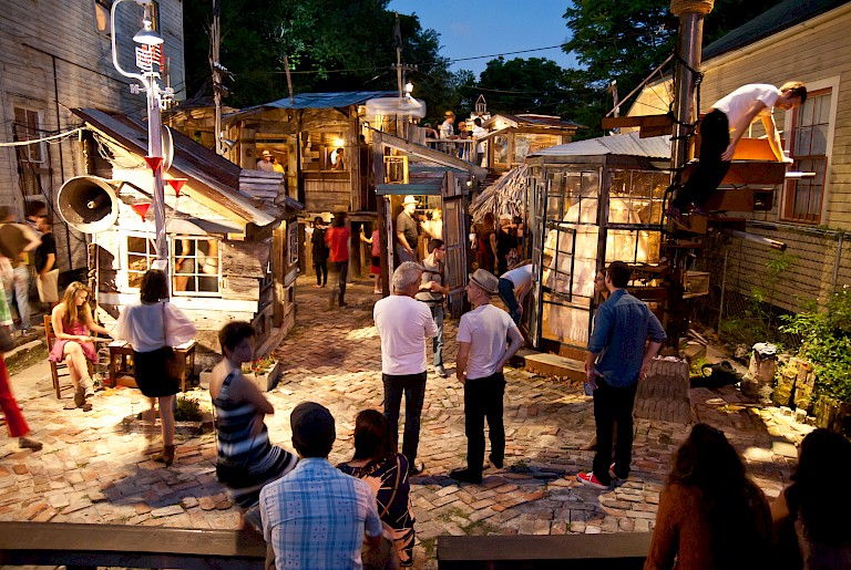 Plans continue for the site. Part of a larger project, The Music Box served as a trial run for Dithyrambalina, a permanent settlement of musical structures. In addition, New Orleans Airlift’s headquarters will be housed in a building designed by Brooklyn-‐based street artist Swoon who contributed wheat paste art to the previous settlement. Currently The Music Box’s structures are living on as a “roving village” that will travel throughout New Orleans and the United States to share the playful inspiration of the Music Box and New Orleans art community.