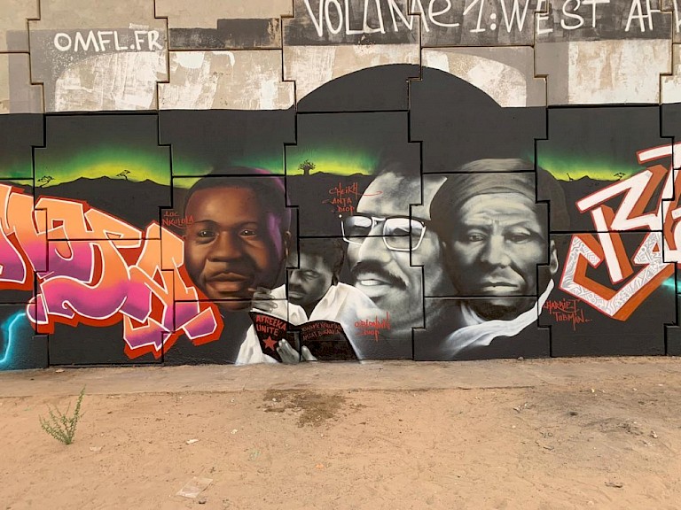 The collective’s frescoes are generally very visible in the city and therefore necessarily appeal to passers-by. The works convey strong messages of self-determination and seek to rupture many paradigms in force within the economic situation on the African continent. The medium assists many to understand the messages of the works in a country where illiteracy exceeds 50%. The Ñullest Wall fulfils this mission of transmitting a philosophy and mindset of self-determination by presenting activists or heroic leading figures who worked for the betterment of the condition of their fellow citizens.