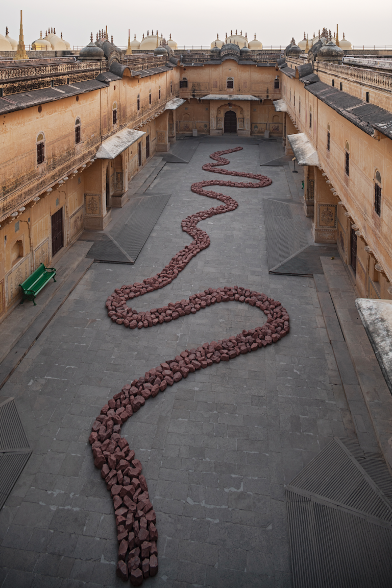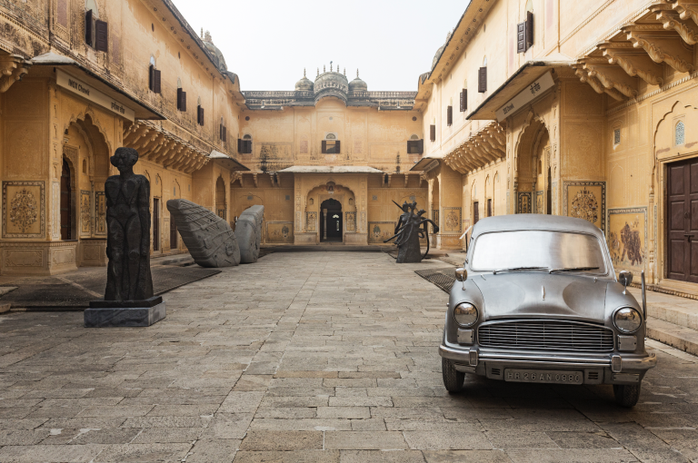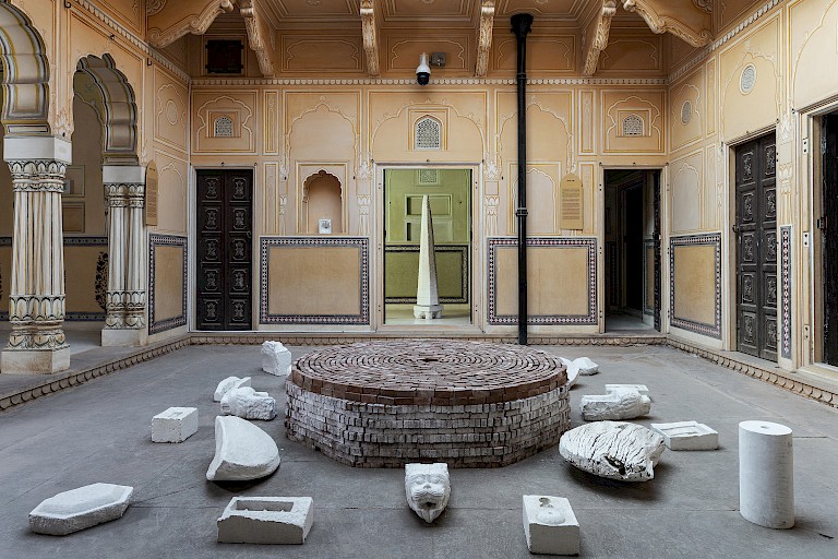 The vision for the Sculpture Park (SP) started in 2002, when American curator Peter Nagy - who was working as a curator in Jaipur, Rajasthan on a city-wide arts festival - had the idea to put large-scale outdoor sculpture into Amer Fort. Cut to 15 years later, when in 2017 a discussion began with the Government of Rajasthan to create a sculpture park in an existing fort. After considering a few possibilities, the Madhavendra Palace inside Nahargarh Fort, on a plateau just above the city of Jaipur, was chosen as the site. The initial vision was to bring a wide variety of types of sculpture together, in a variety of materials and made by both Indian and international artists, so as to educate the audience about the limitless possibilities of sculpture today.
