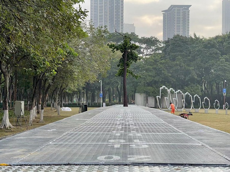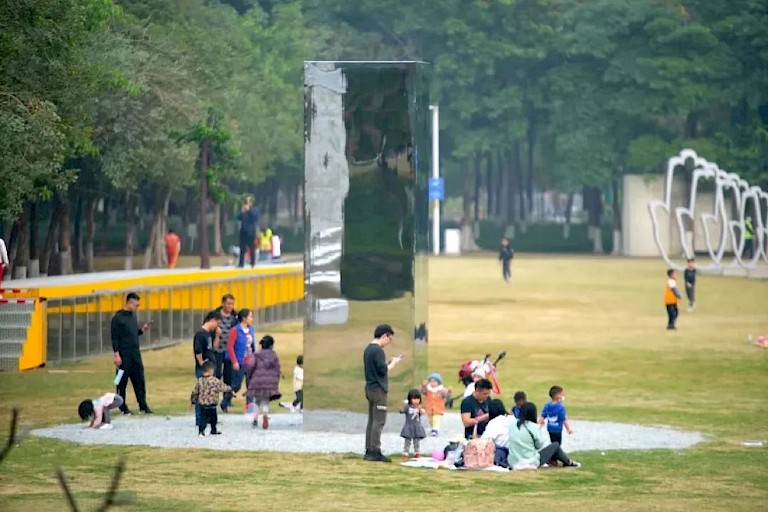 The work Spaceship is based on the old fishing boats of the North District Fishing Village, the last pure fishing village in the Nanhai. The boat and the wings open a dreamy linkage, implying that mankind and nature are a community of destiny that coexists in harmony. José Drummond's work The more you want to forget, the better you will remember is a quadrilateral steel columns integrate with the environment..This installation creates an absent reflective polished stainless steel monolithic vertical stone circle within the plaza, representing an immaterial image of time. It is a space to stop, contemplate, think and breathe, which is so needed in this fast paced contemporary world we live in. This project aims to provide a description of the world as a whole, rather than consisting of separate natural and social realms. It is not purely conceptual or purely artifactual. It is a site-specific installation of process-based research that redesigns the understanding of representation, object, subject, time, casualty, agency, emotion, and subjectivity in a world composed of interrelated entanglements of concept and matter.