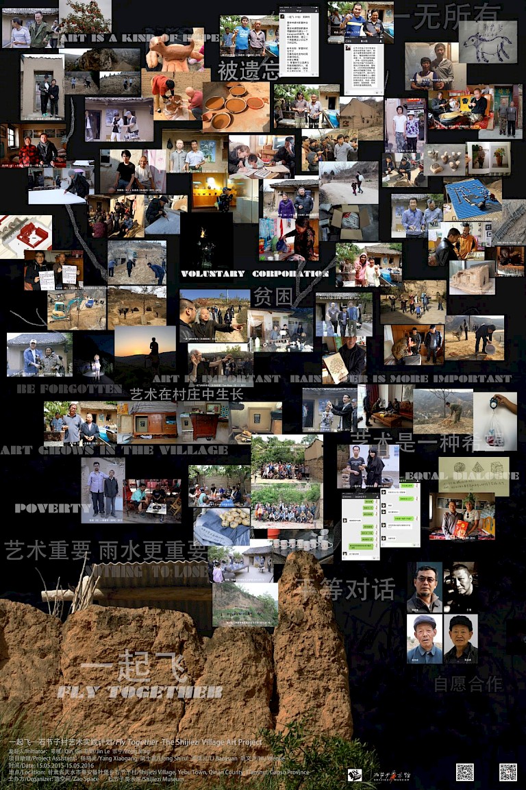 The project Fly Together was founded by the artist Qin Ga and Li Baoyuan in which emphasized the importance of collaboration between artists and villagers. Without any fund-raising and strategy, the artists found a random way to work with local people. Through discussion and living together, they built trust to create the works. The project addressed the issue of the connection of poor, remote village to outsiders. It also questioned how art could develop without capital.