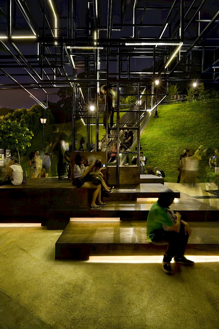 Evoking the powers of the mythical Banyan tree, FARM has not only created a contemplative gathering place for the public, but also one that responds physically to its users and how they interact with each other and their city. With a footprint of 100 square meters, The Tree is a holistic spatial experience that re-invents the familiar in a whole new light. Inspired by and created in the image of an organic natural form, the sculpture alludes to cultural richness and symbolism through a contemporary reading of the Banyan tree. The hypnotic visual landscape the work creates through its form and interactive response creates fresh and evocative connections between a new generation of Singaporeans and their cultural memory. It ceases to be a copy of a tree, but a truth in its own right.