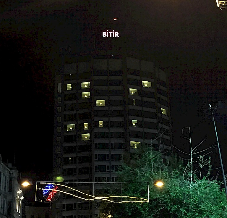 Planned to screen one month after Women’s Day (March 8), TSNS opened on April 23rd 2016. Only three days later on April 26th, however, the work was shut down by order of the Municipality. According to some media reports, the shutdown order was issued because a complaint had been made that the work was “insulting religious views.” According to other reports, the Municipality considered that the video caused “visual pollution” and violated Urban Design regulations. In any case, TSNS did not screen again above the Marmara Pera Hotel.
