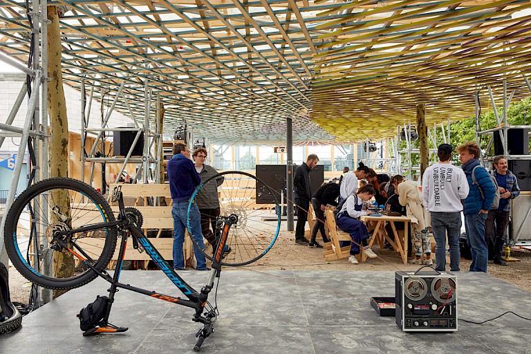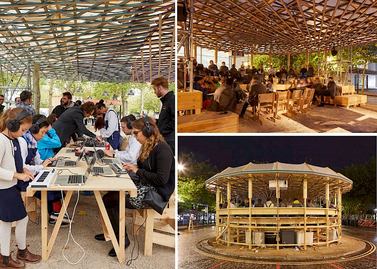 The festival lasted for two weeks. However, the structures were built beforehand. An illustrated video on the raumlabor website depicts the shared public workshop process, all design steps, and the operational mechanisms that led to the creation of the model and structure.