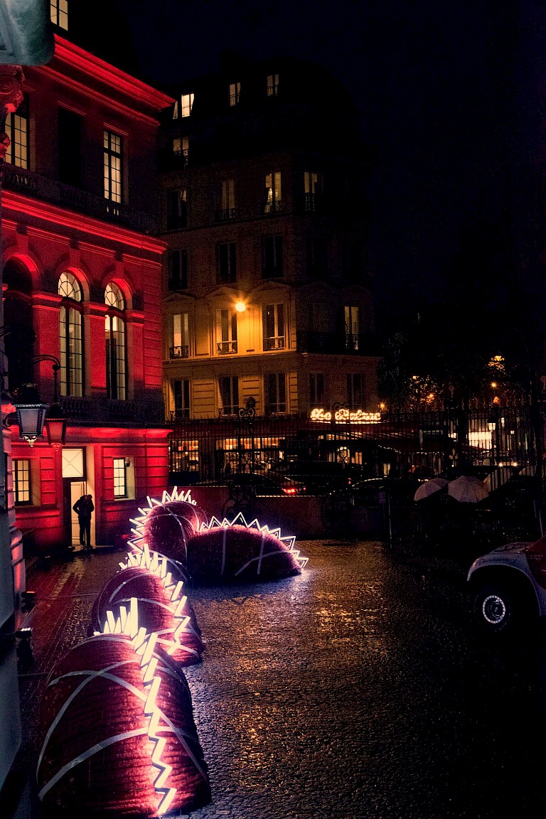 In 2014, The State made an appearance at the United Nations headquarters in NY, a venue that symbolizes the will of world cooperation and development, where people debate and share international policies and strategies for the safeguard of the environment and for the sustainable exploitation of our Planet’s limited natural resources. The same year, the Garbage Patch was in ARCO, the international art fair in Madrid, with a public installation on the Gran Vía. A 12-m “blanket”, realized with the help of a group of students from IED, composed of plastic bottles containing flower buds, hung above the heads of passers-by and shone at night in the flashlights. In 2015, on the occasion of the first National Holiday of the Garbage Patch State, the Museum of 21st-Century Arts MAXXI hosted in the pavilion “MAXXI Educazione” the first embassy of the new State, where applicants could take up the citizenship and retrieve their ID. A long line of people formed in order to make their own passport. In 2015, the Garbage Patch State was invited by the New York Times to Paris, to manifest itself to Heads of State and Government during the COP 21 Climate Conference, trough an installation of an artificial creature made of plastic cups, the named Climatesaurus.