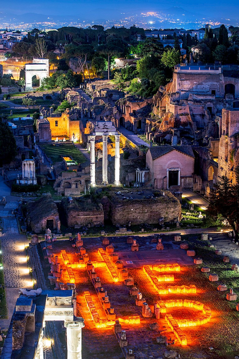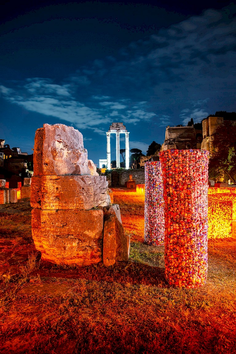 In 2016, the University of Palermo involved students and associations and organized workshop to realize The Garbage Patch installation named HELP, placed on the island of Mozia, Sicily on an archeological site. The event registered a high number of visitors, national newspapers published the artwork, and a large number of interactions trough social media. In June 2018, in Rome, the installation "HELP the Ocean" was located on the Roman Forum. During the inauguration of the last work more than two thousand people were crowded on the Piazza del Campidoglio where on the facade of the Palazzo Senatorio the video of the images of the installation was projected.