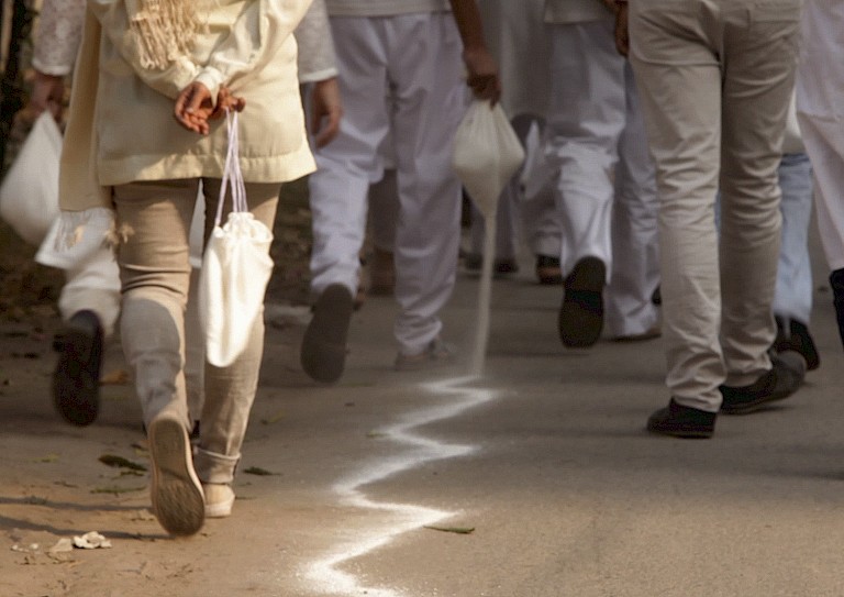 The work took place on a residency in Lahore with the Lahore Biennale Foundation in October–December 2016. The project is, formally as well as symbolically, a dialogue with the local culture. The piece was action-research into the relationship the local culture has with walking in public space. Forums were created for they city’s residents to discuss this issue, and the ideas that emerged from them guided the unfolding of the work.