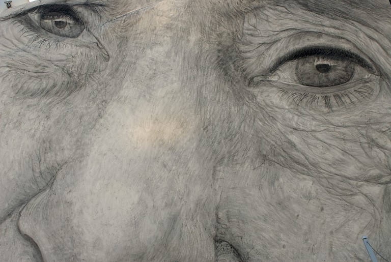 Sited in Bahrain’s largest city, Manama, the mural evoked the region’s past through the portrait of the fisherman, a symbol of the rapid erosion of tradition and the past by Bahrain’s self-transformation through oil wealth into a financial hub. Bahrain’s fishing villages are dying out, as the landscape gives way to skyscrapers and advertisements carrying images of the King and the political elite, together with those of commercial products. According to the artist, ‘in Bahrain the only large scale images of heroic proportions are those of the king and others in power.’ By inserting the image of a relatively anonymous person into the public sphere—a character belonging more to Bahrain’s past than to its future—the artist did in a sense help to reclaim public space, particularly for the memory of the marginalized, the nobodies in Bahrain’s post-oil economy. Considered in the context of Bahrain’s participation in the Arab Spring, essentially a series of ongoing protests, violent and non-violent, by ‘the people’ against political rulers in the Middle East, the portrait may well be seen as a laudable intervention in the city’s economy of signs, so many of which constitute expressions of political (monarchical) power. This is one of the points of excellence of the project.